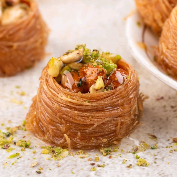 Discover the perfect blend of tradition and luxury with Nest Baklava, brought to you by Sri Balaji Mithai Bhandar. This exquisite dessert is a masterpiece of craftsmanship, combining layers of crisp, golden filo pastry with a rich medley of nuts and a luscious drizzle of honey syrup. Each bite offers an irresistible harmony of crunch, sweetness, and flavor, making Nest Baklava the ultimate treat for any occasion.